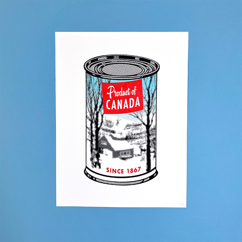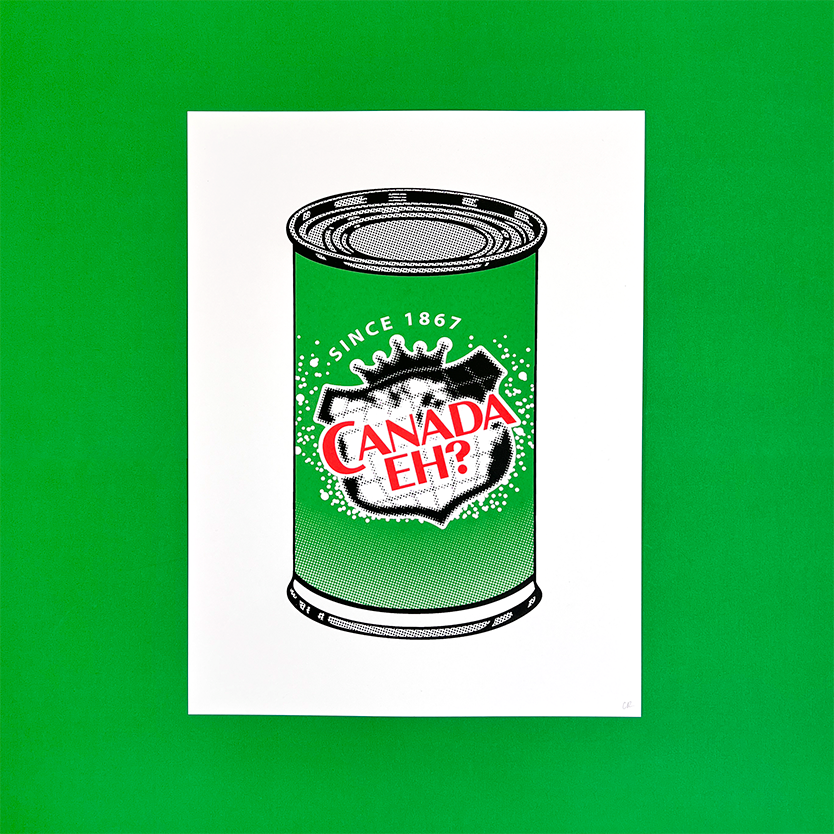 All prints measure 12 x 16 inches. 3 colour screen prints on 100 lb white cover stock using water-based inks..